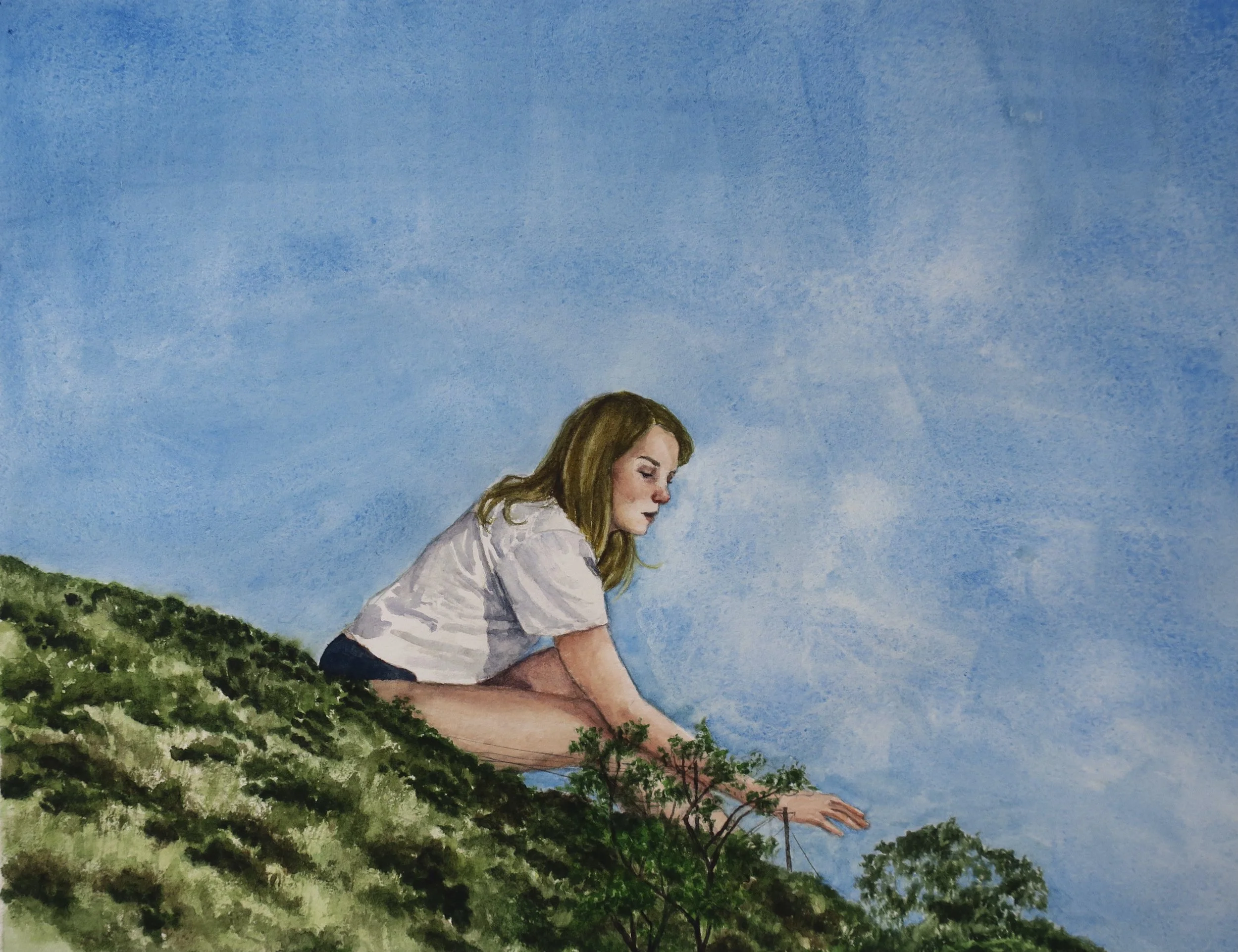 "Giant on the Hill," watercolor on Rives BFK paper, 10 in. x 13 in., 2022.