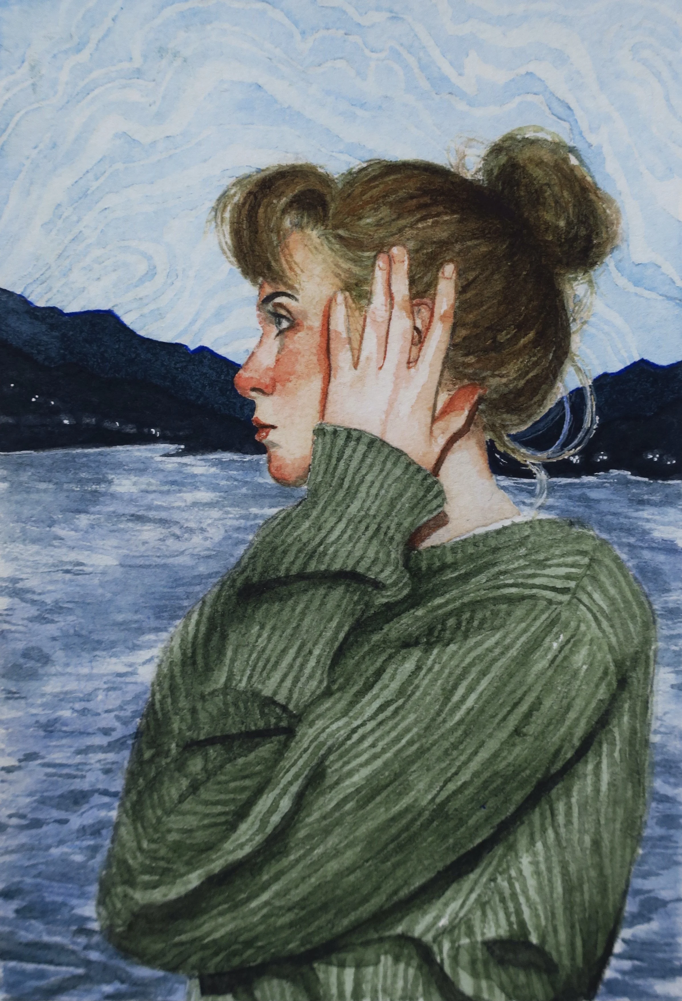 "Facing the Unknown," watercolor on Rives BFK paper, 4 in. x 6 in., 2022.