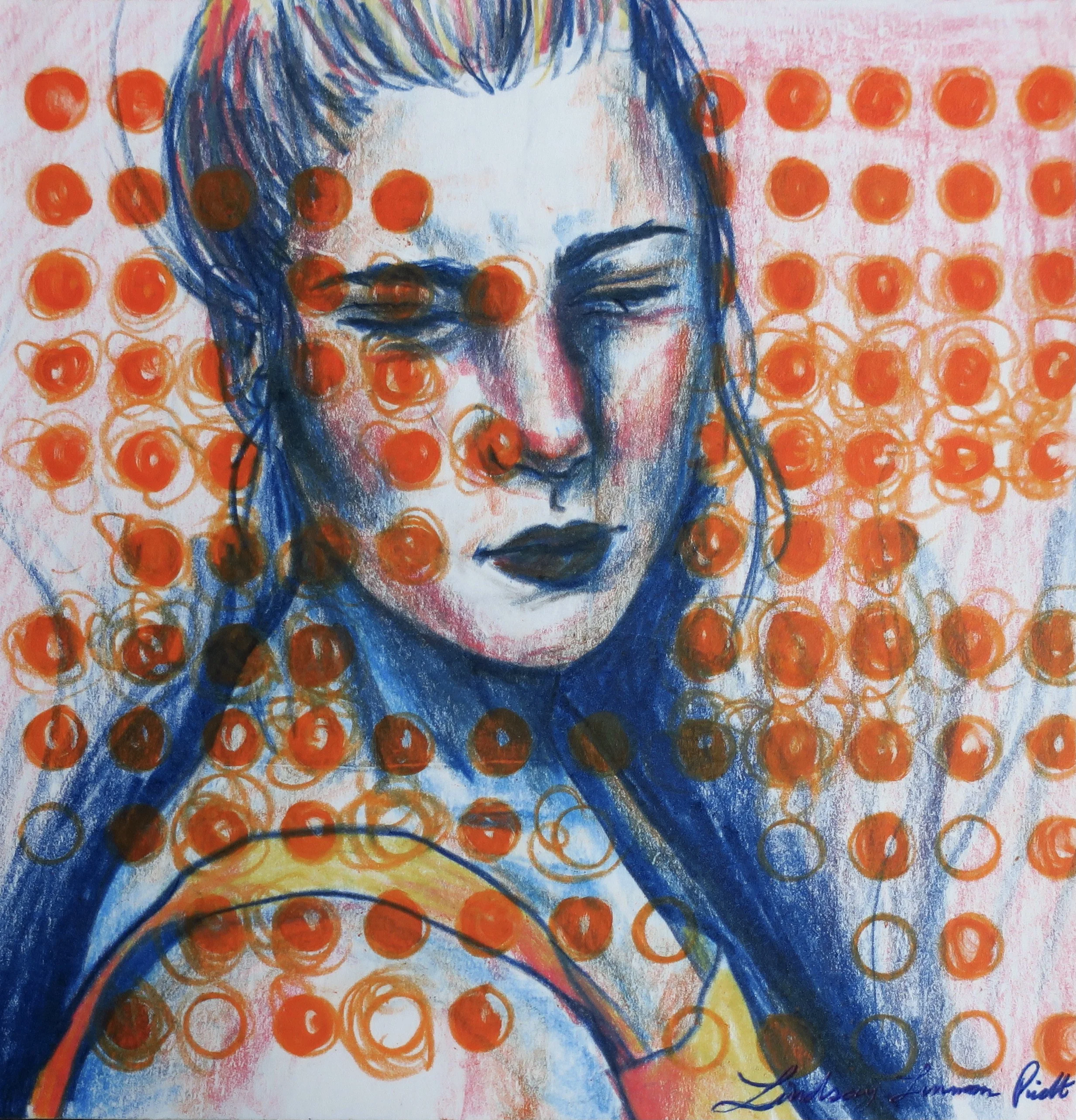 "Interruptions," colored pencil on paper, 5.5 in. x 5.5 in., 2022.