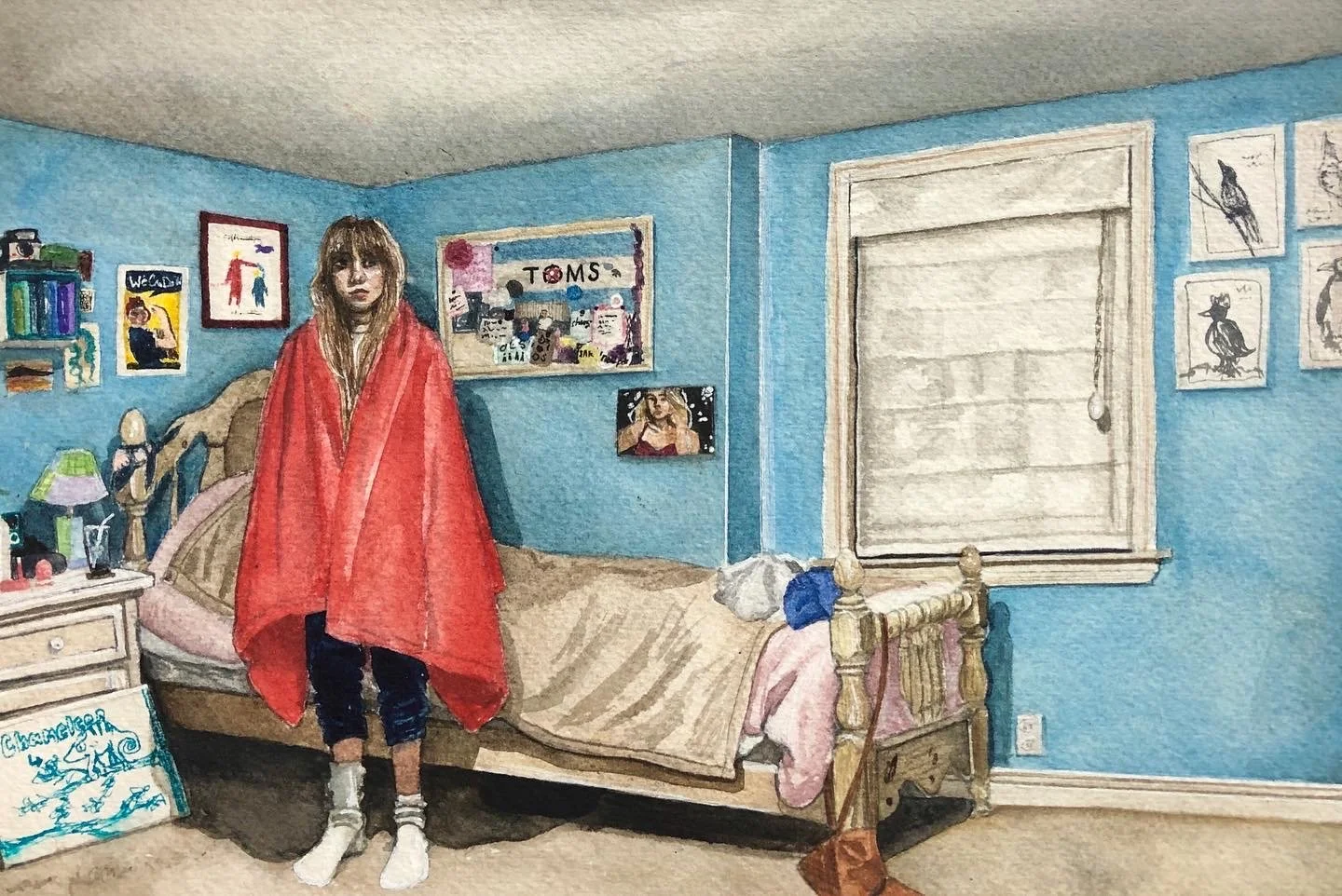"Comfort Zone," watercolor on Rives BFK paper, 6 in. x 9 in., 2021.